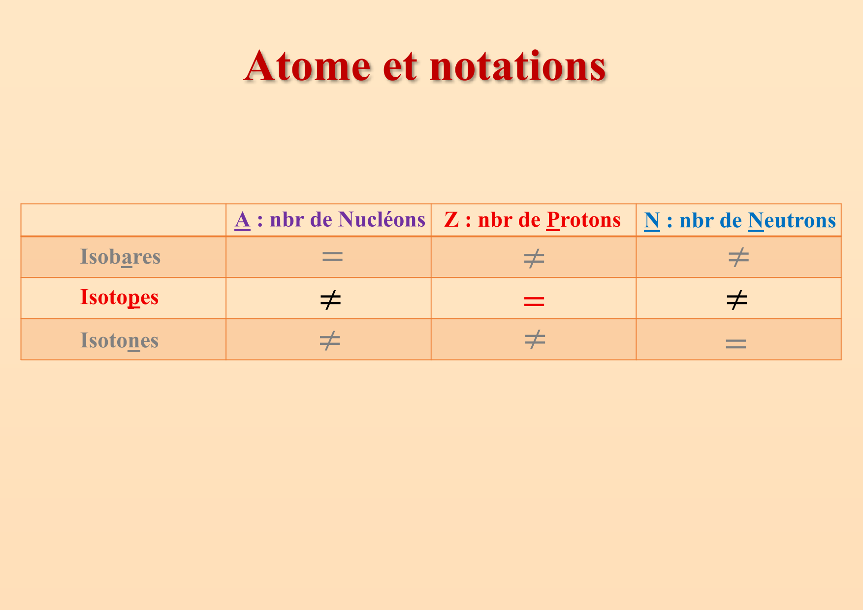 Le tableau ci-dessous donne une partie de la carte des nucléides où est renseigné leur nombre de masse.